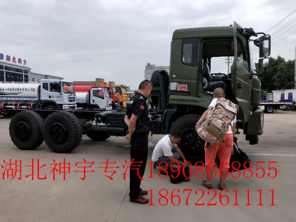 兩臺東風六驅底盤EQ2220GD5DJ到廠,即將開往車間進行裝配!