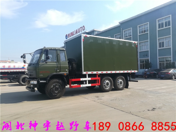 東風六驅(6×6)越野載貨車,廂式貨車又叫廂式車,主要用于全密封運輸各種物品,特殊種類的廂式貨車還可以運輸化學危險物品...
