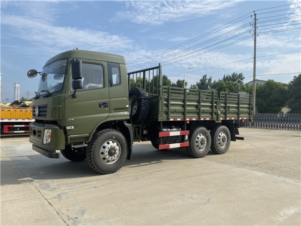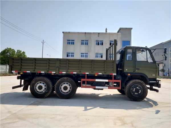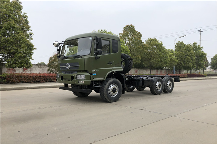 東風六驅越野載貨車采用平頭一排半駕駛室,6*6驅動,康明斯190馬力,韶齒6檔變速箱,斷氣彈簧制動,4噸前橋,4.5...