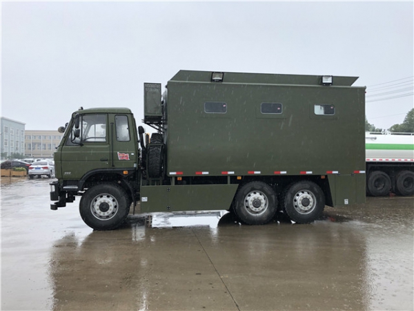 東風六驅越野餐廚車、餐車是根野外執行任務的需要,為提高后勤保障能力,改善野外生存條件而研制的一種新型自行式炊事車,特別...